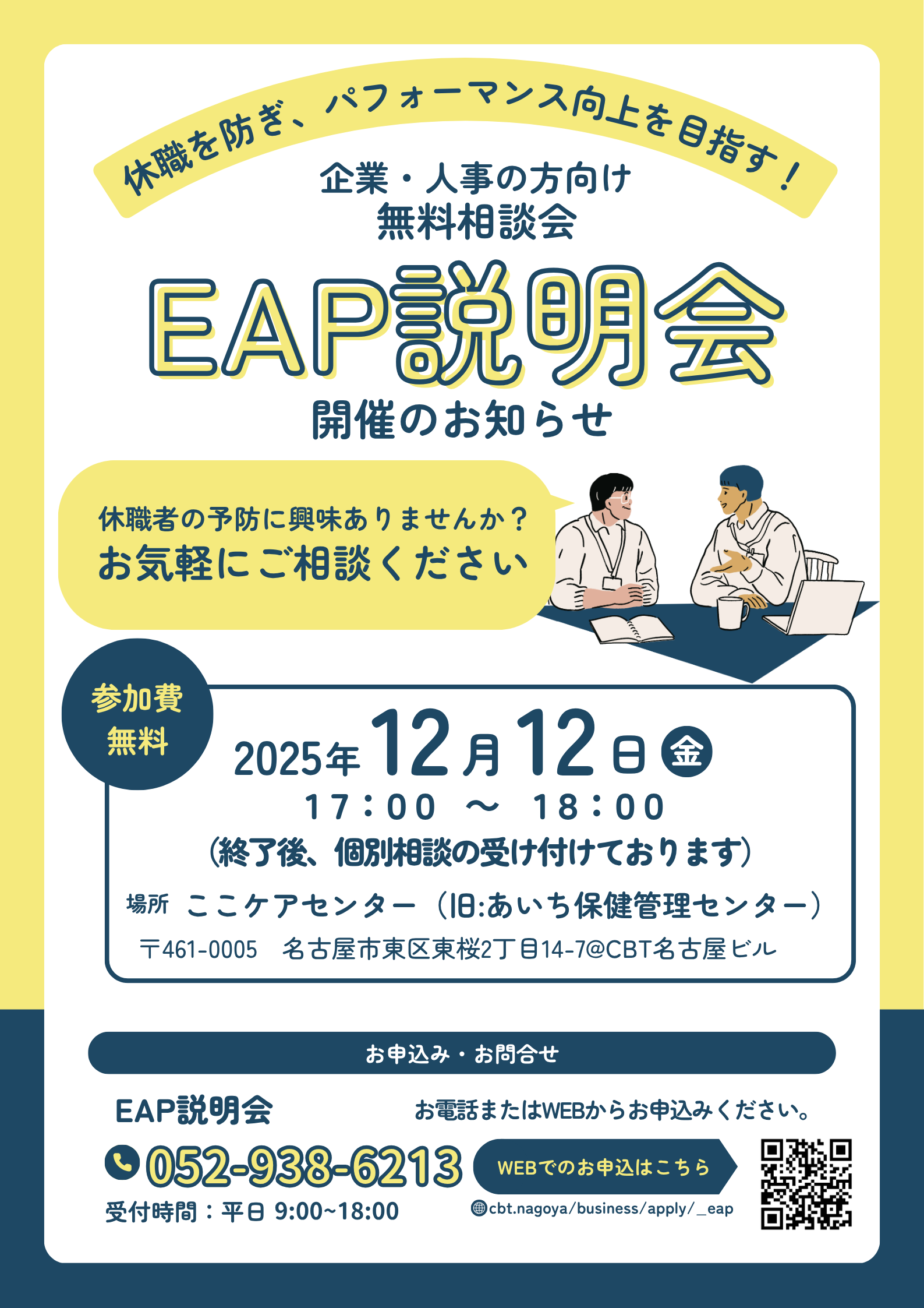 企業・人事ご担当者様を対象に、職場における休職者発生の予防に関する説明会を開催いたします。