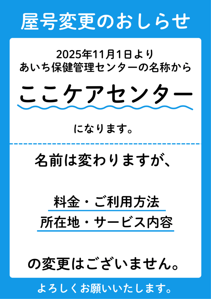 2025年11月1日より、あいち保健管理センターの名称から「ここケアセンター」に変更いたします。